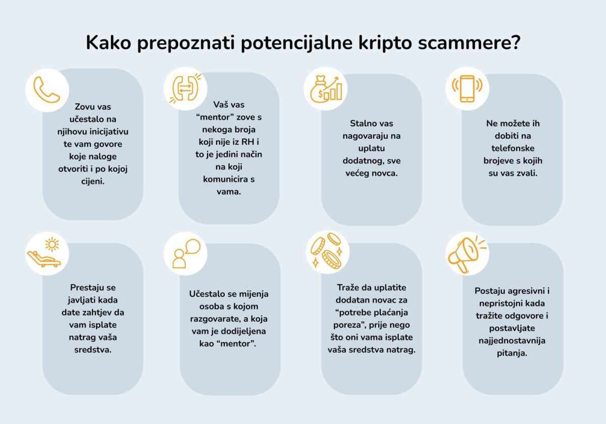 - Nerealna obećanja: Često obećavaju brzu i visoku zaradu bez rizika. Takve ponude nisu realne ni na jednom tržištu.