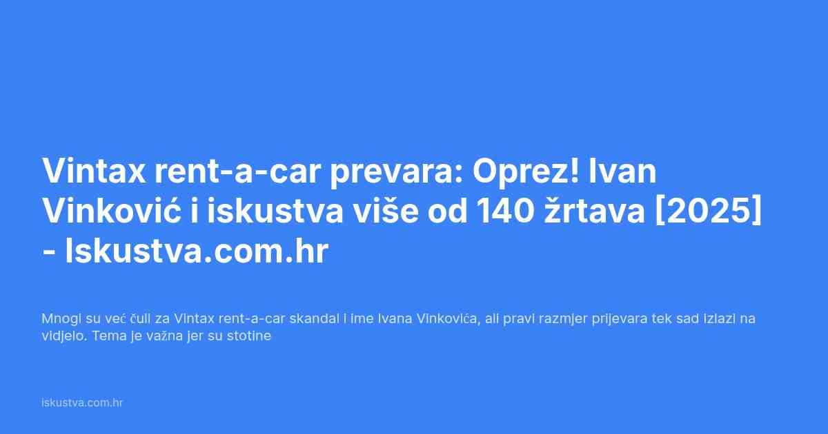 Mnogi su već čuli za Vintax rent-a-car skandal i ime Ivana Vinkovića, ali pravi razmjer prijevara tek sad izlazi na vidjelo. Tema je važna jer su stotine građana i turista ostali bez depozita i novca, a sumnjive prakse ove agencije mjesecima pune forume i prijave nadležnim institucijama.